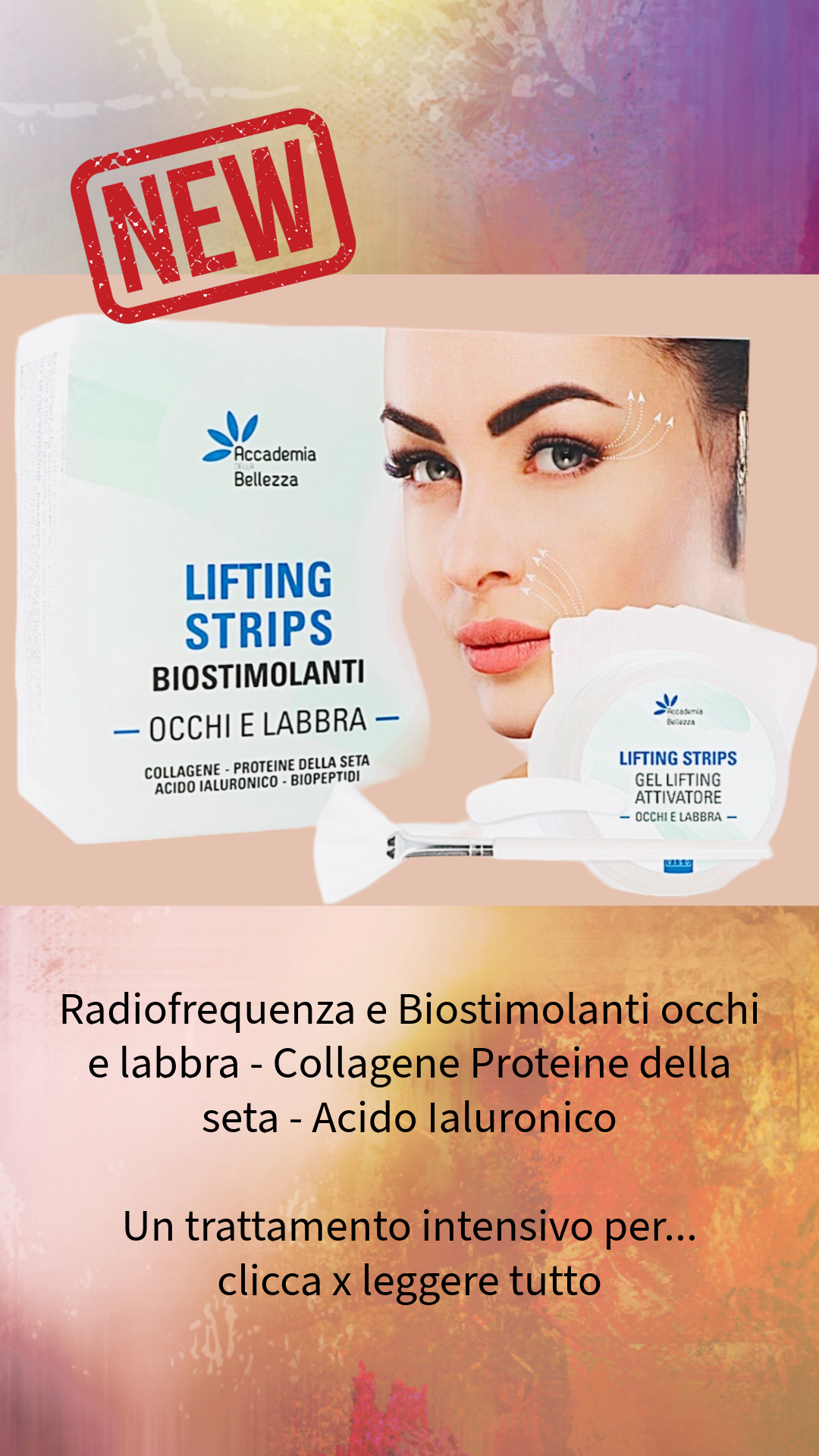Un trattamento intensivo per contorno occhi e rughe nasolabiali. I principi attivi presenti nelle strips e nel gel Che utilizzeremo lavorano insieme per offrirti il miracolo di una pelle più tesa, tonica, levigata e uniforme fin dalla prima applicazione potenziato dall’effetto della radiofrequenza.